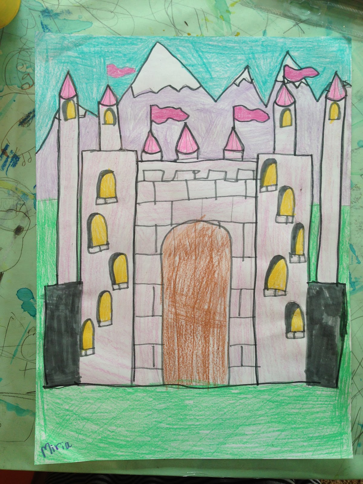 These hot air balloons kicked off our Spring Session of Art School. This was kind of a "free" exercise. I let them design their own hot air balloons. I taught them about painting wet on wet with water colors, how to draw a hot air balloon and then let them use some creativity to finish up the design on the balloons. I told them to use bright colors and leave no white space.